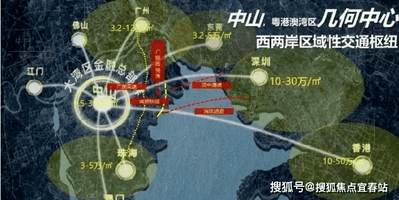 中山是整个粤港澳大湾区规划的几何中心,同时也被赋予建设“珠江西岸综合交通枢纽”的任 务,打造“湾区 30 分钟生活圈,港澳 1 小时内互达”的交通枢纽体系。