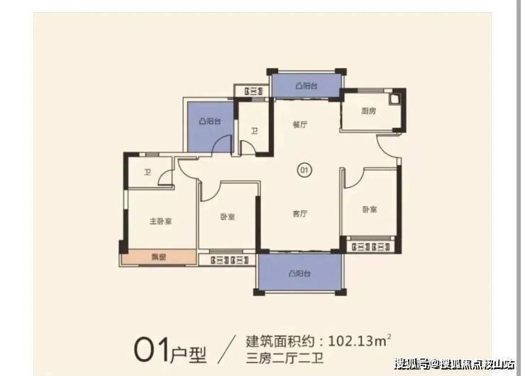 102㎡(3+1房二卫)南北通,折后总价112-117万左右/套,单价1.1-1.15万/㎡
