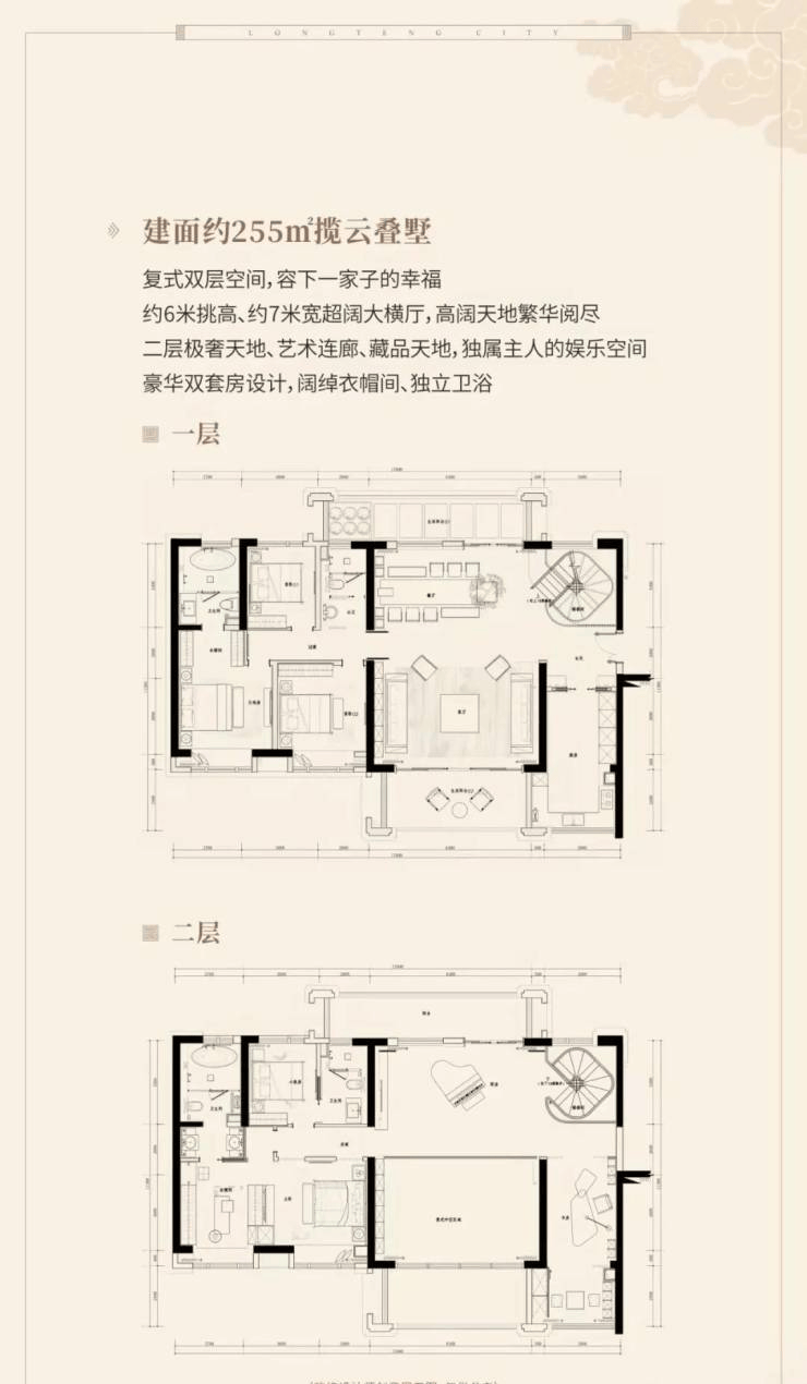 隆腾盛世项目,由惠州市隆腾房地产开发有限公司投资开发,总占地面积约12.5万㎡,总建筑面积约50万㎡,容积率为较低的2.12,总户数2120户,车位总数达到3781个,车位配比超过1:1,是集高品质高扩墅群、舒阔型高层住宅、特色社区商业MALL及商业街等物业类型,配备双语国际幼儿园、泛会所、体育场所,标准游泳池等一站式配套于一身的墅级品质大盘。项目由17栋高层住宅和34栋别墅组成,配备一所双语幼儿园。