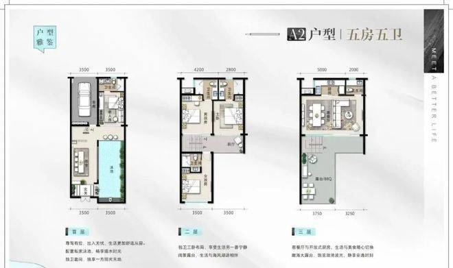 建筑面积80㎡,赠送率高达225%—400%,实际使用面积270㎡—320㎡,5房5卫别墅,也可改6房。