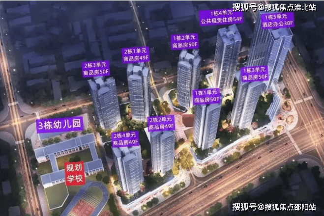 项目分2个地块打造,有2条空中连廊相连,总占地面积约3.78万㎡,总建筑面积约38.8万㎡,计容建筑面积约31万㎡,容积率8.2,绿化率40%,共由8栋总高49-54层的住宅组成,其中1栋1/2/3单元商品房50F,2栋1/2/4单元商品房49F,2栋3单元商品房50F,1栋4单元公租房54F,另外1栋5单元写字楼+酒店38F,还规划有1所幼儿园。