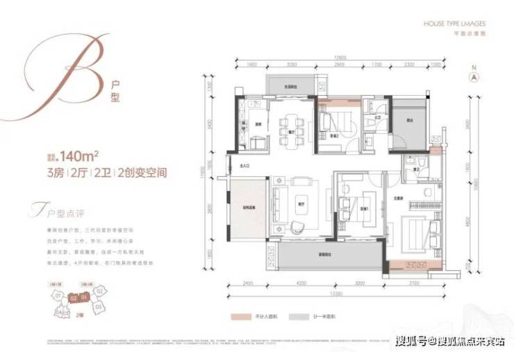我们先看小面积的建面约103㎡2房+1创变空间。