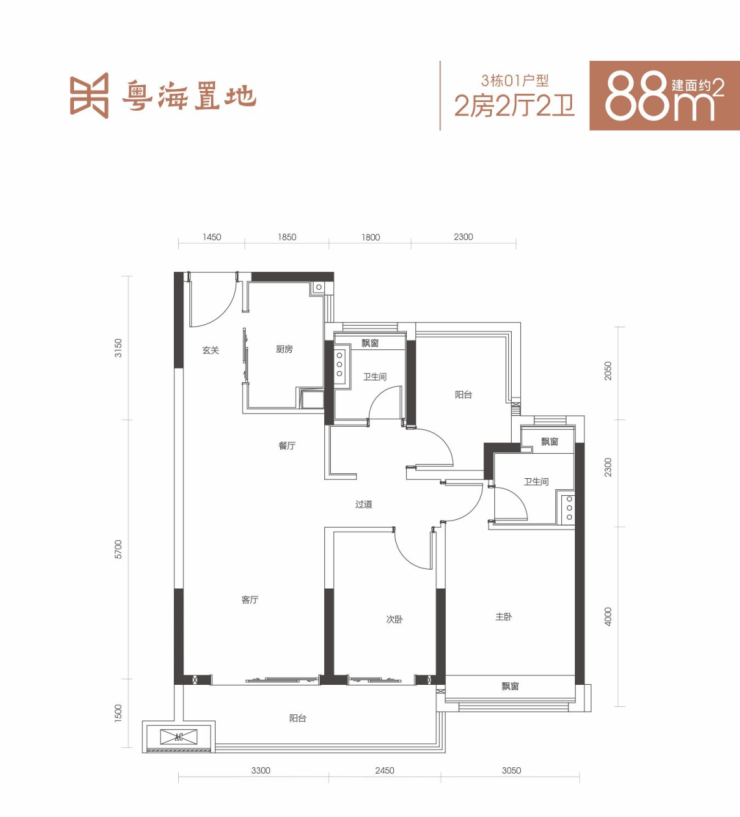 88㎡朝南2+1房2厅2卫,折后总价50-62万左右/套