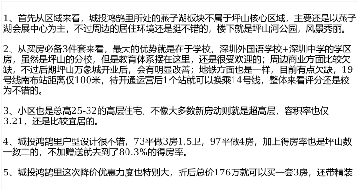 城投鸿鹄里已经是妥妥的准现房,家门口是深技大附属坪山实验学校,约900米有深圳外国语坪山学校,也可以报读深中坪创学校,拥有三大名校,并且靠近坪山河公园,自然风景极美。