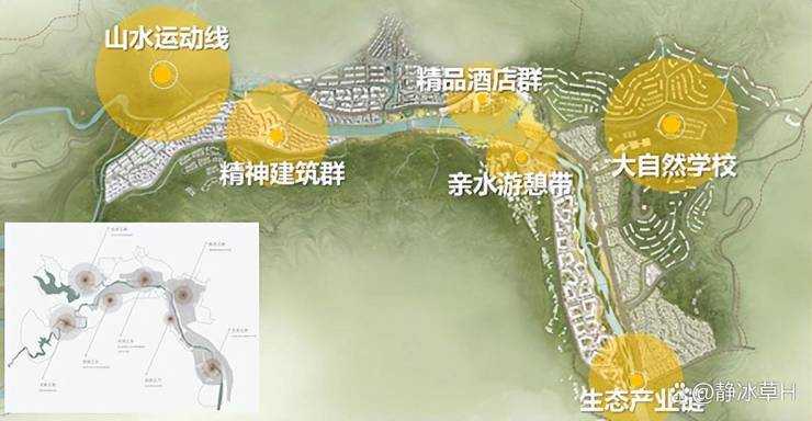 项目耗时四年对8.5平方公里的溪流山谷做了全域统筹规划,以“一个人的精神湾区”构想和科学系统性的规划理念,汇聚群山、树林、草甸、翠竹、温泉等大地艺术,凭借“精神建筑群、亲水游憩带、精品酒店群、大自然学校、生态产业链、山水运动线”六大规划主线串联“艺术之野、悠游之川、颐养之镇、风尚之谷、创意之丘、乐活之森、寻秘之境”七大主题板块,匹配“酒店、艺文、餐饮、儿童、运动、休闲、教育、便民”八大系统脉络,构建全系运营的配套逻辑,为不同时段、不同年龄的个人及家庭提供理想化度假生活形态空间与内容,让被城市孤立的现代人可以饱飨山与水的多界面体验。