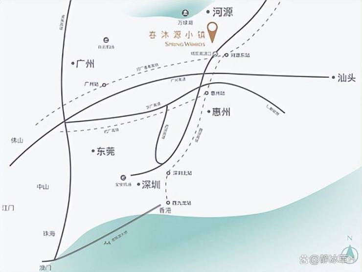 项目位于广东省河源市源城区埔前镇陂角村,距离河源市区车程约半个小时,距离广州市区约187公里,距离深圳市区约162公里,项目紧邻长深高速、广河高速与河源东站(广河高铁与赣深高铁),自驾车程时间2小时内到达,2021年12月10日赣深高铁全线通车(通车后香港西九龙至河源东站仅1小时),项目完全融入粤港澳大湾区1小时经济生活圈,区位整体通达性较高,距离时长适宜周末家庭短途出游度假。