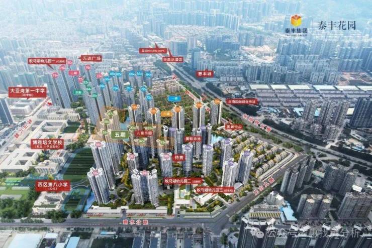 泰丰牧马湖位于惠州大亚湾大亚湾大道旁(万达广场350米)项目总占地面积约55.6万㎡,住宅总建筑面积约101万㎡,项目围绕原生湖泊而建,产品线丰富,涵盖别墅、小高层、超高层等多种产品形态,以打造“未来活居所”为理念,将规划建设成一个“开放型混合功能的全龄型社区。”