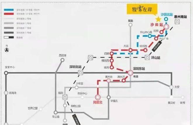 深圳地铁14号线贯穿福田区、罗湖区、龙岗区,止于沙田站,终点预留延伸至惠州条件,计划将于2022年通车。牧云左岸距沙田站直线距离仅约2km,交通便捷。