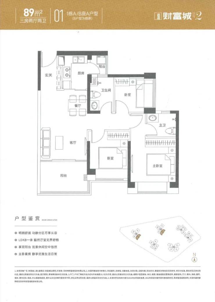 财富城明德苑,总占地面积约1.18万㎡,总建筑面积约9.89万㎡,计容建筑面积约7.64万㎡,容积率6.45,绿化率35%,共规划2栋4座32-54层高的住宅,其中1栋A/B座住宅32F,1栋C/D座住宅54F,规划有4950㎡商业。总规划682户,地下2层,规划停车位732个,车位占比1:1.07。