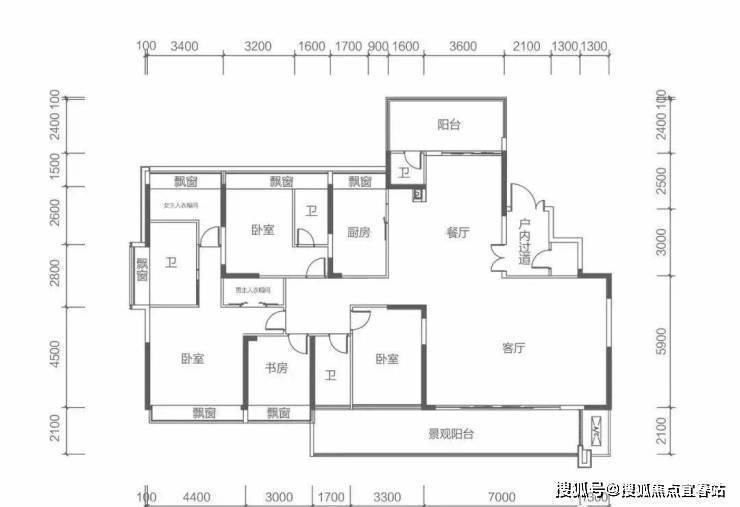 7栋奇数层 M户型建面约260㎡ 5房2厅5卫
