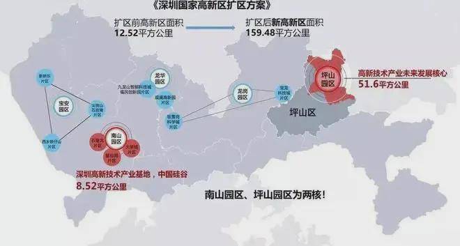 片区产业:约51.6平方公里国家高新区,5倍于南山科技园;重点打造新能源、生物医药、第三代半导体三大千亿产业,比亚迪、中芯国际、赛洛菲等名企云集,共同构建湾区级产业科技创新基地。