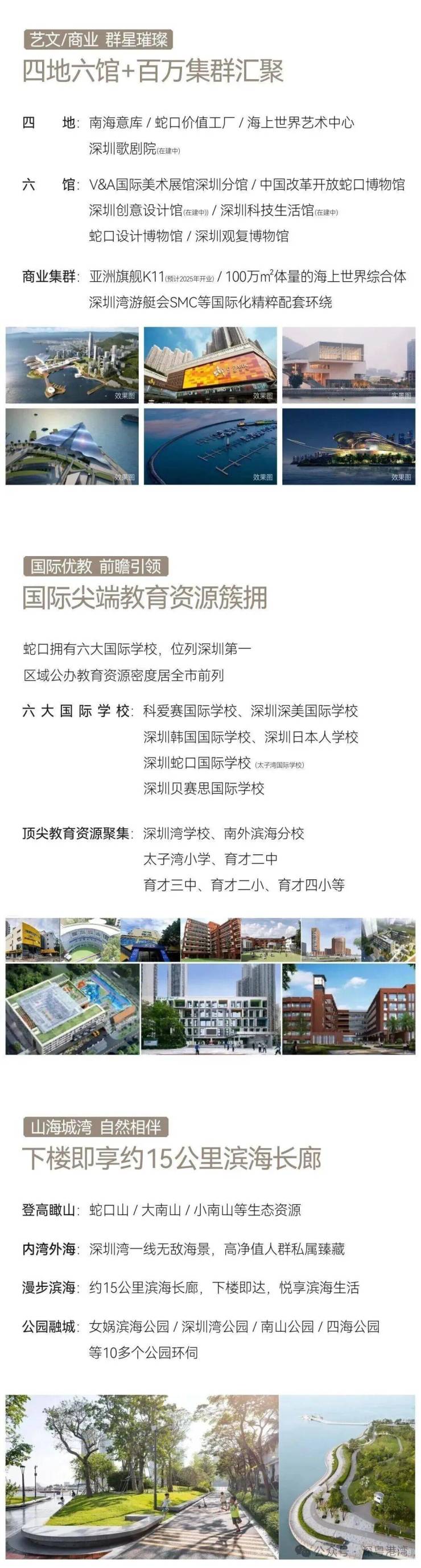 教育资源:周边有半岛第二幼儿园、南海玫瑰为明幼儿园、双玺幼儿园、蛇口幼儿园、半岛第三幼儿园等幼儿园,以及南山外国语学校(集团)滨海学校、太子湾学校等优质中小学。