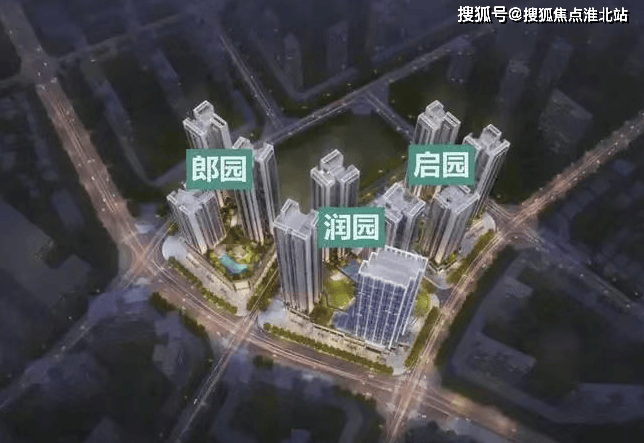 建筑规划:项目由 3 个地块组成,分别是润园、朗园、启园,由 10 栋建筑主体组成。