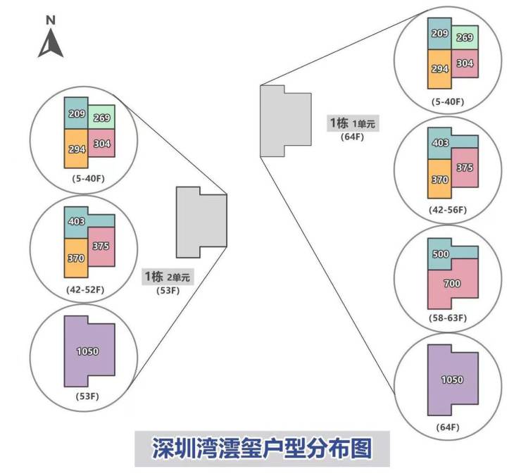 低区(5-41层):209-304㎡四房,适合科技新贵家庭;