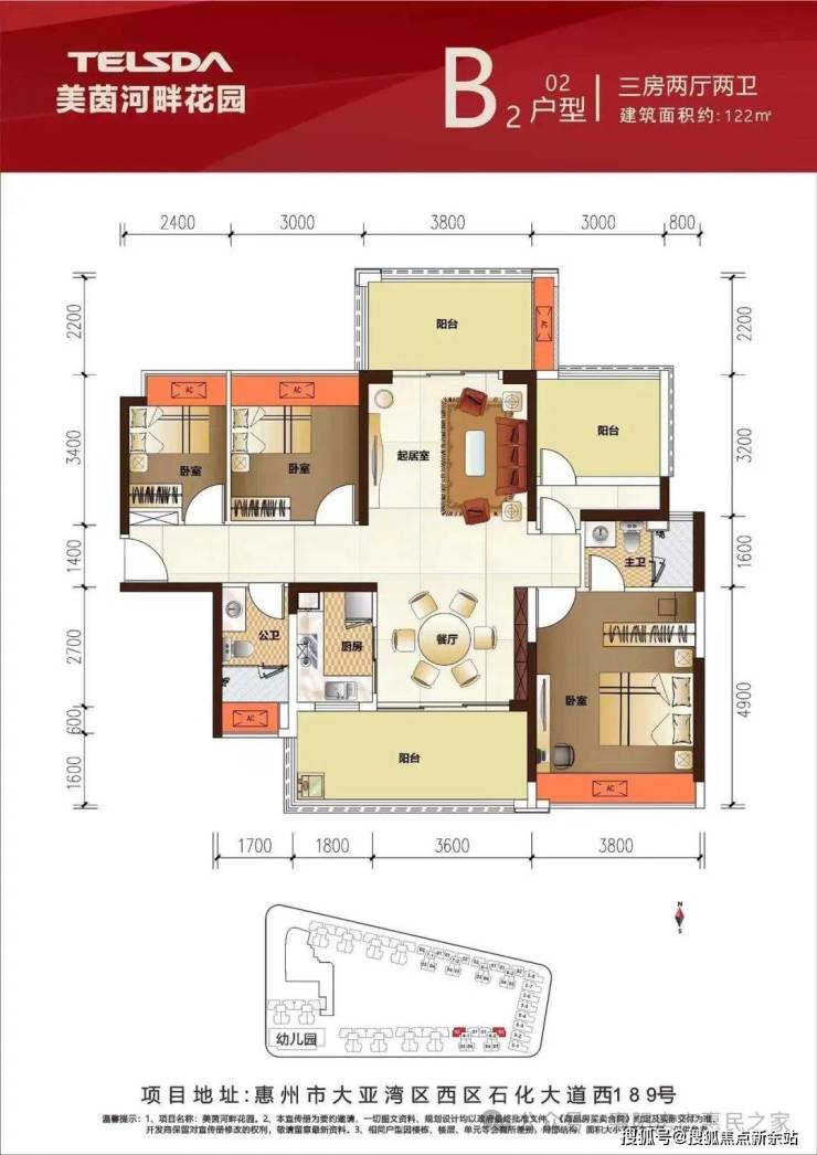 大亚湾美茵河畔花园在售户型:91-102-122㎡,3-4房,南北通使用率高。