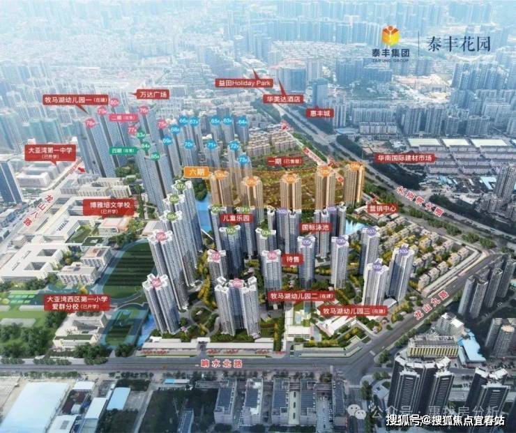 泰丰牧马湖位于惠州大亚湾大亚湾大道旁(万达广场350米)项目总占地面积约55.6万㎡,住宅总建筑面积约101万㎡,项目围绕原生湖泊而建,产品线丰富,涵盖别墅、小高层、超高层等多种产品形态,以打造“未来活居所”为理念,将规划建设成一个“开放型混合功能的全龄型社区。”