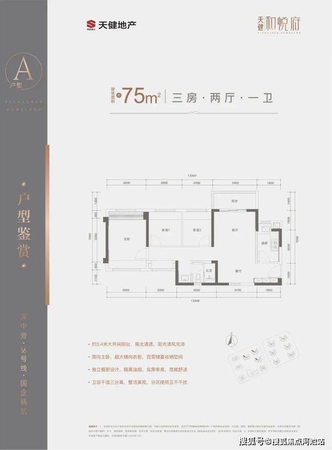 天健·和悦府在售的户型有4种,建面75-76-89-99平!下面是户型图