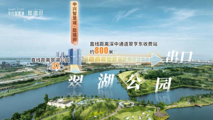 项目距深中通道翠亨东出入口约800米紧邻建设中的南中城际香山站。南中城际香山站与项目楼下的翠湖公园组成“一湖一站”的TOD综合体。