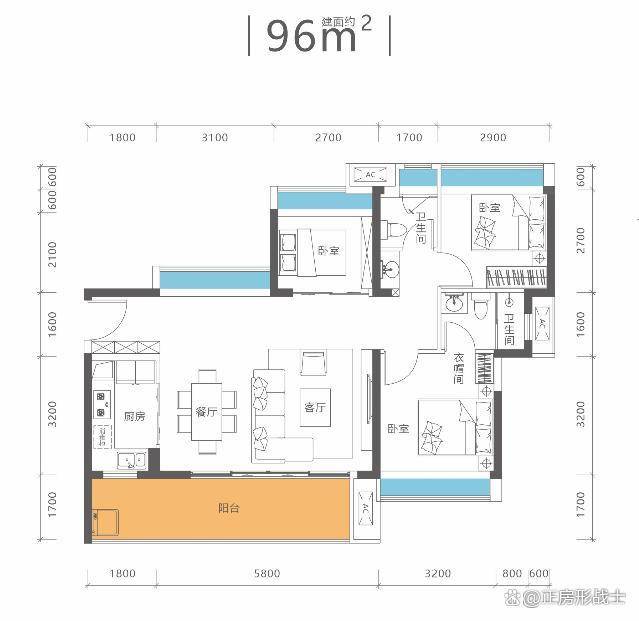 96平3房2厅2卫,