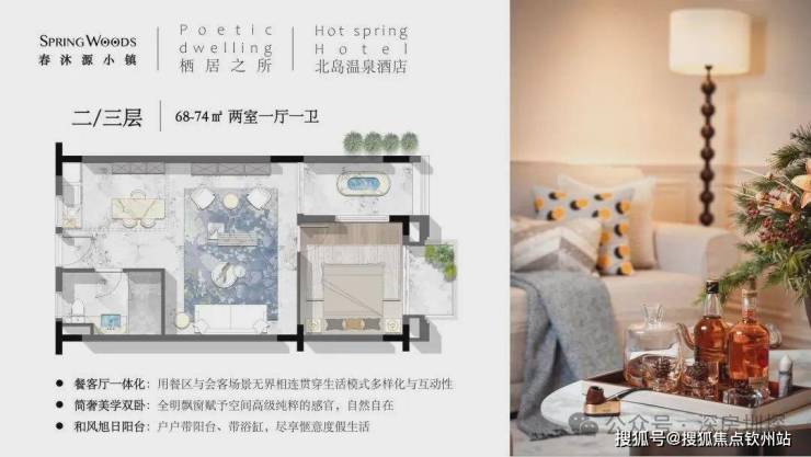 项目具备原生态温泉资源,错落分布在小镇版图上,深挖地下1200米,出水温度 49.4℃的真温泉水,其每升水中含有2.14mg的锶(可有效降低心血管疾病发病率)、6.78mg的氟(对骨质疏松有一定疗效)、74.87mg的偏硅酸(含有一定防癌抗衰老功能)与101.66mg的硫化氢(缓和皮肤干燥,美容养颜),该“气血之汤”疗养功效较高,实属湾区罕见真温泉,泡在静谧的泉池里,完全让身心沉浸到大自然的“灵药”之中。