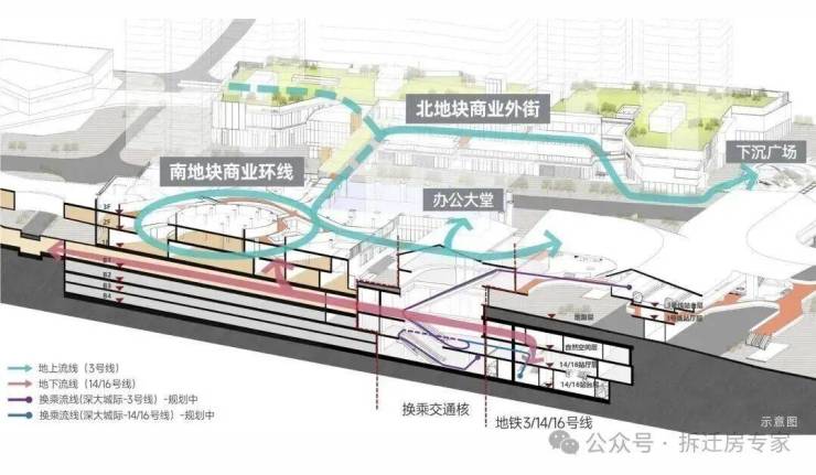 地铁:直线距离16号线大运中心站约800m,一站直达,大运枢纽站,接驳3、14号线和深大城际(建设中)
