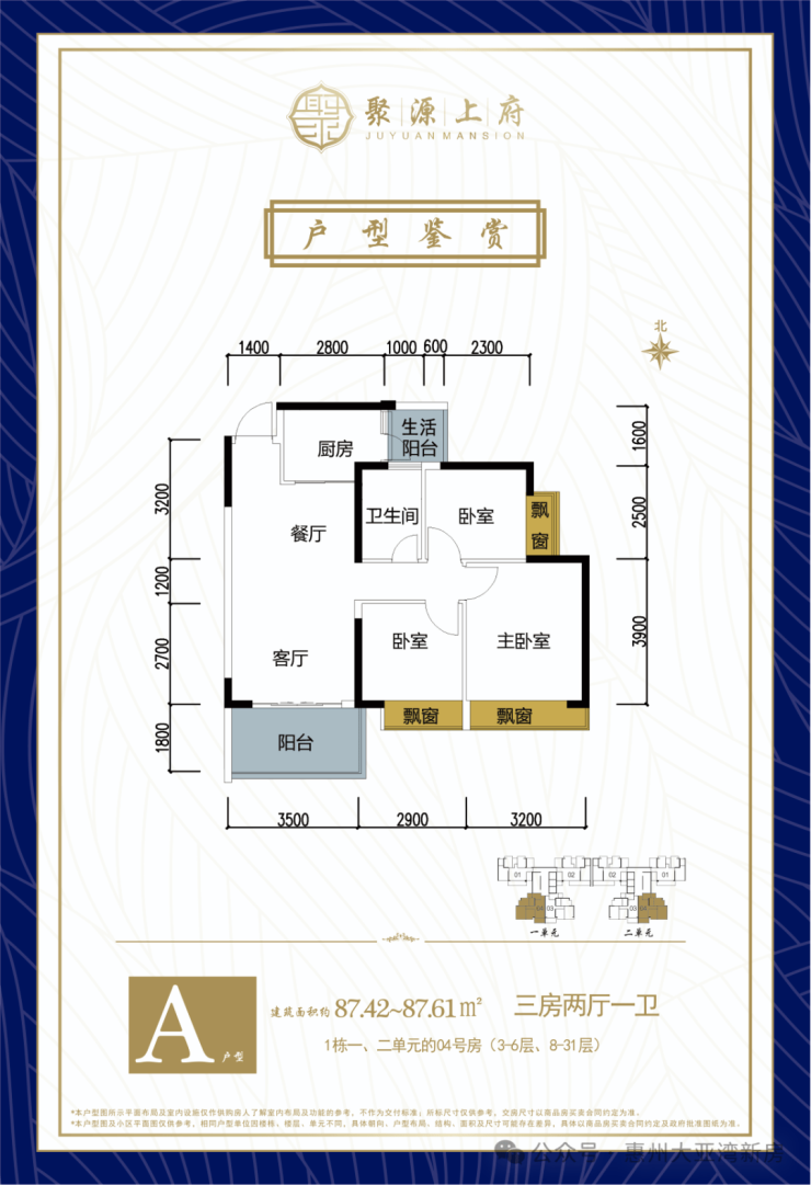 聚源上府位于大亚湾西区,临近深圳2.6公里,沙田地铁站5.5公里,开发商惠州市摩尔城实业有限公司,碧桂园物业管理,整个项目1栋2个单元,243户组成,项目对面一所9年制的大亚湾第三学校(已开学), 聚源上府在售面积 87-115平米,户型使用率高,带装修交付,均价6880-7550/带装修,零门槛上车,