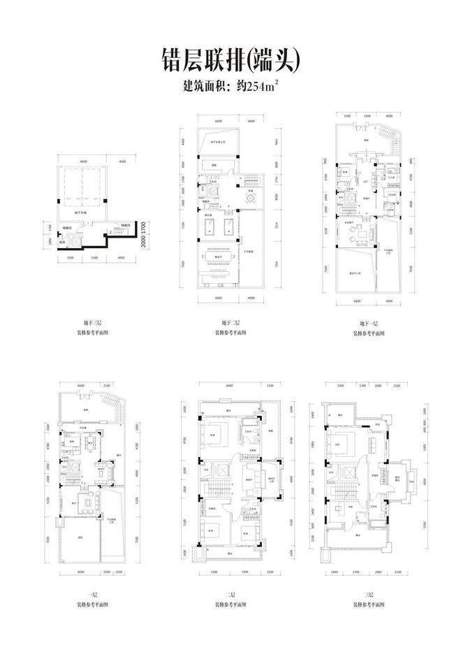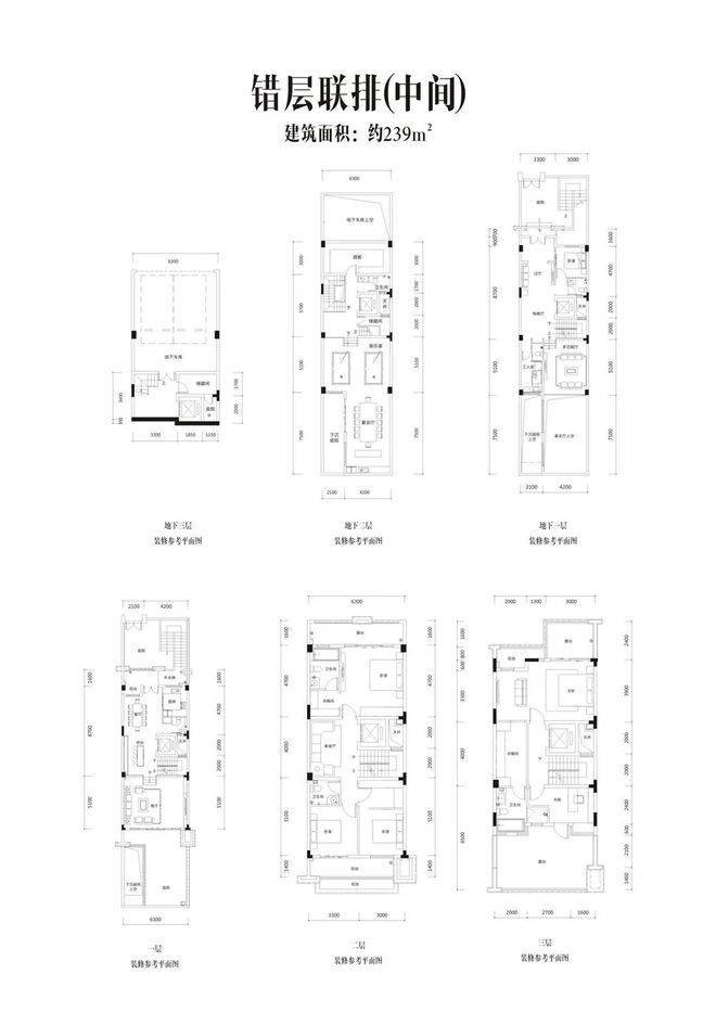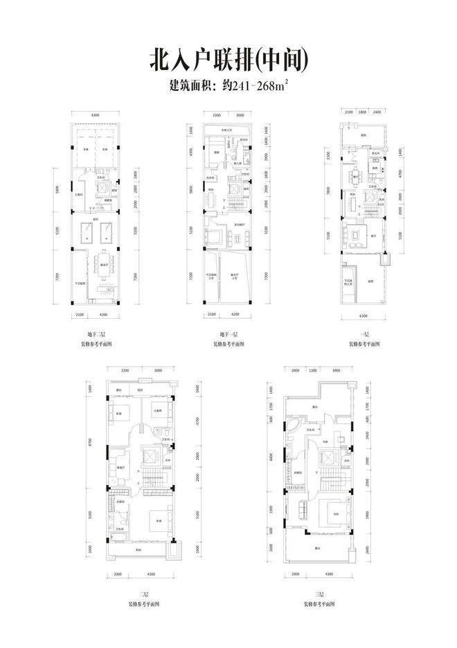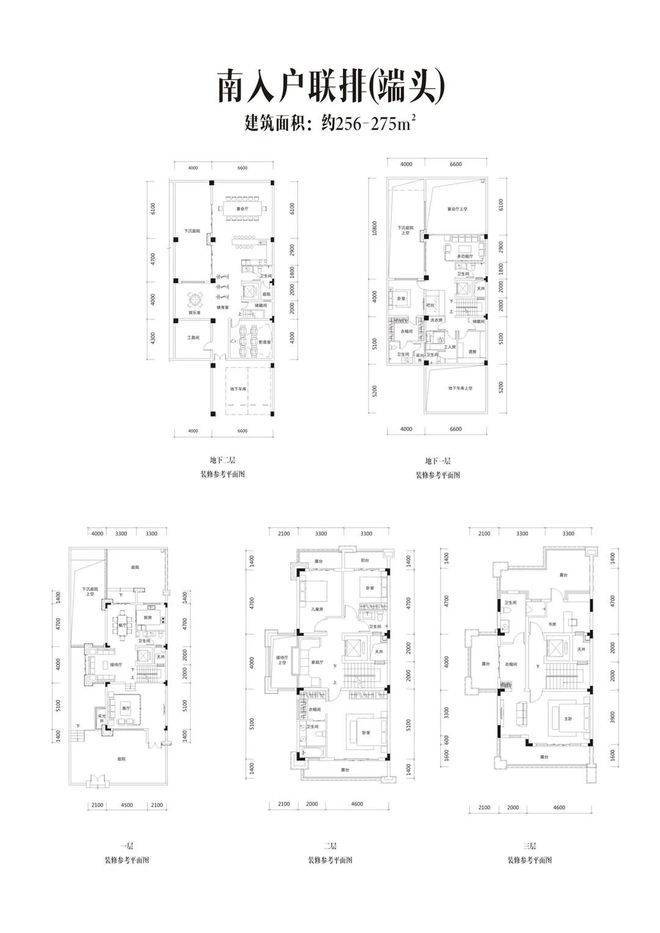 8、【在售产品】约251㎡端头/238㎡中间错层联排;约256-287㎡端头/约239-268㎡中间南北入户联排