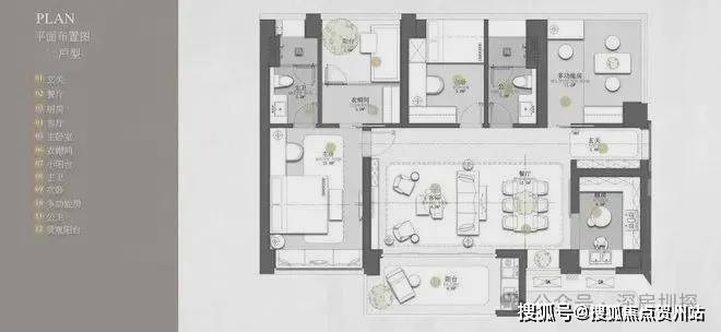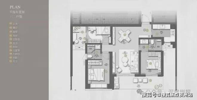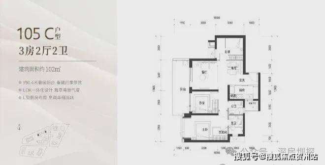 本次首推的 02 地块 105 ㎡产品有 4 条腿,户型有这个双龙抱珠的,还有一个户型是竖厅格局,各有优势,看个人喜好选择。