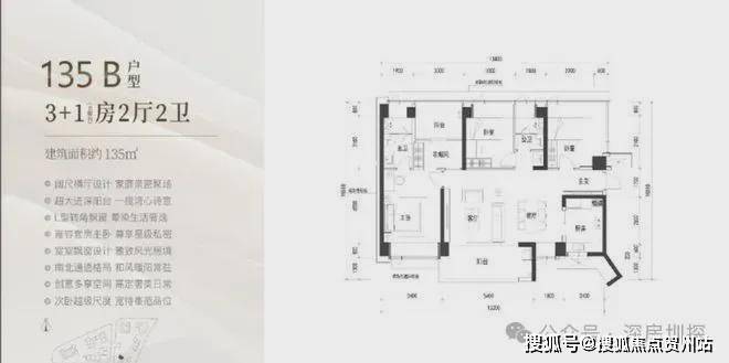 户型为大三房两厅两卫,东南朝向,含赠送半,阳台和飘窗等平台部分后使用率可达约 88%左右,这在超高层中是非常高的使用率。其中主客卧、客厅、双阳台合计开间超 12m,大尺度四面宽朝南,带约 6.15 米奢阔观景台,堪比一线豪宅的观景尺度;主卧超奢阔大套房,且预留了室内后期业主自行改造的灵动空间。
