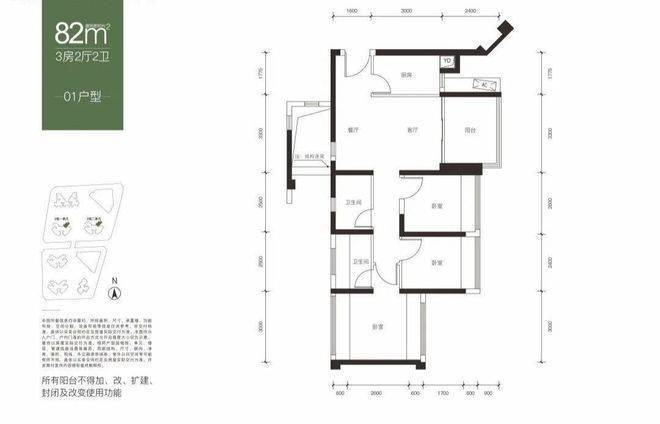 建面82平米:3房2厅2卫,传统的竖厅动静分区格局;南北通透户型,虽说不是完全通透,这种户型在深圳还是很受欢迎的,深圳夏长冬短,通透户型居住起来舒适很多;82平米做到3房2卫,功能间的大小还比较适中,产品设计没有任何吐槽的;主卧是双面采光,其中一定有一面朝东南或者西南,不用担心采光问题;项目是精装交房,阳台宽带2.4米,交楼时会往前推90公分,保留阳台1.5米的宽度;卧室所有的飘窗都会优化,交房的时候开发商改造好,鸿荣源的特色。