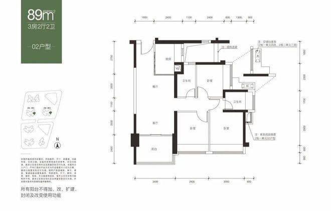 户型总结:所有的户型都没有特别大的缺点,82平米紧凑的3房2卫,功能间稍小但是齐全;89的3房2卫房间面积比较优秀;所有的户型客厅的阳台和卧室的飘窗都可以优化
