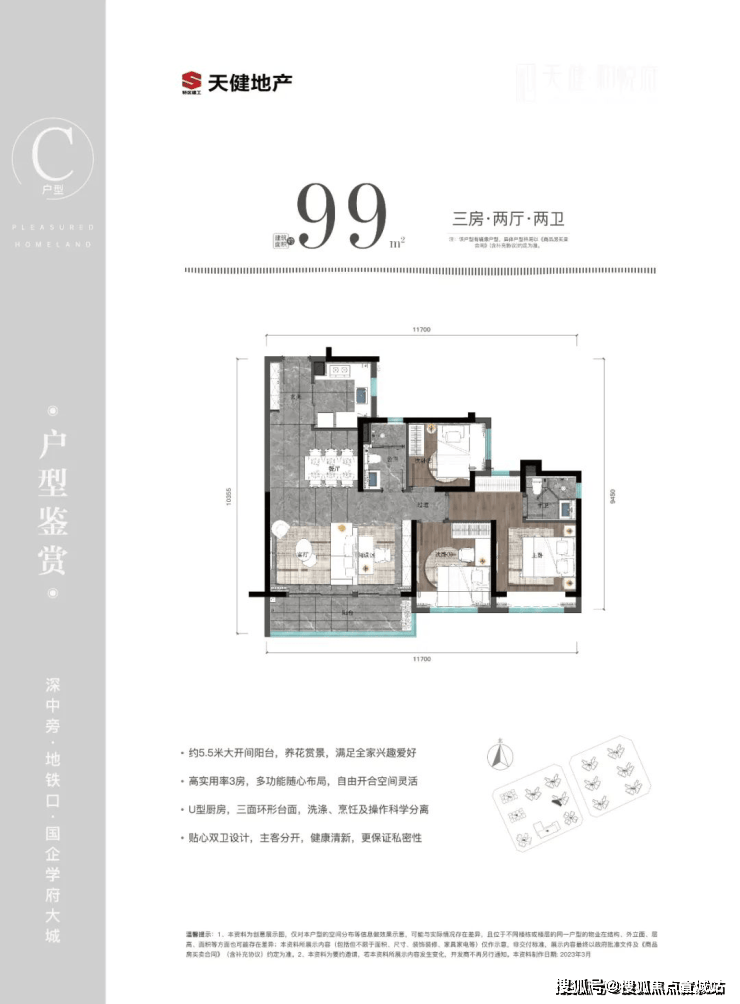 坪山石井,天健和悦府面积有75-76㎡的3房2厅1卫,89㎡的3房2厅2卫,99㎡的3房2厅2卫户型(可改4房),计划在2025年12月底前带精装修交房。加推现推出特价76平3房2厅,总价150万起.