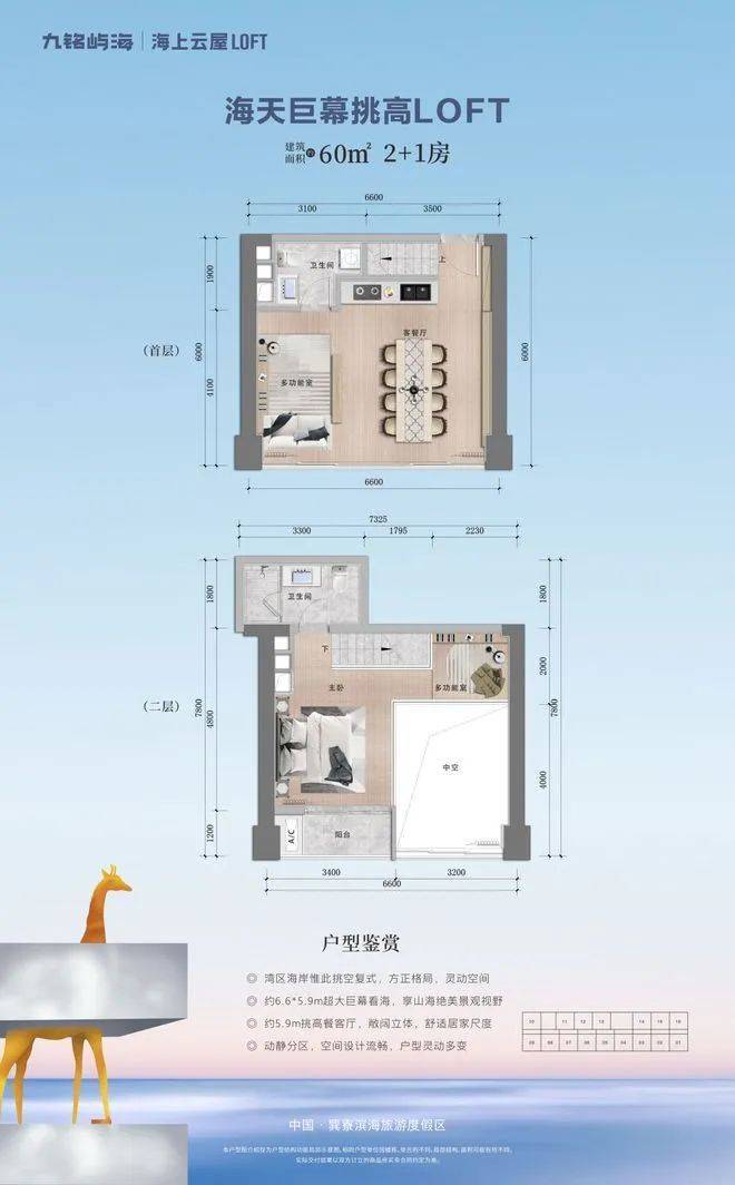 双层宽幕海景LOFT 60㎡ 3房2卫
