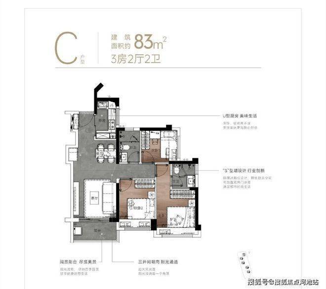83㎡的3房2厅2卫,折后总价218万起,单价约2.62万/㎡。