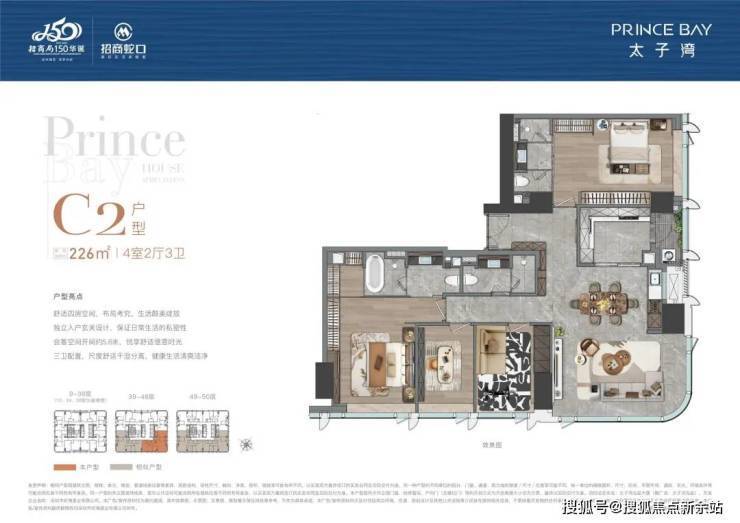 鼎级配套:约170万㎡未来之城(约61万m2商务集群,含约380m超高塔尖商务总部+约46万㎡滨海商业,含K11亚洲旗舰商业体、D-park等+约39万㎡国际滨海社区+6万㎡文化艺术中心+约8万㎡五星级酒店+约4.5万㎡太子湾国际学校、国际医院),一湾三坊城中城,滨海生活时代领地。