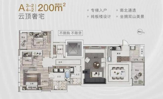 A座:建筑面积约160-220㎡2-3房(南北通透,专梯入户)