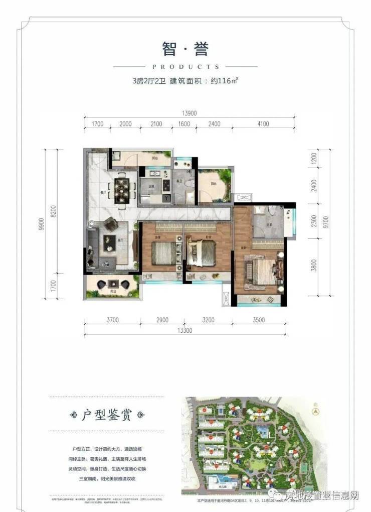 周边配套:项目周边最重要交通配套为惠州南站;此外项目内修建有业主私家登山道,连通亚公顶森林公园;向西约1公里处有天虹商场和大润发,为目前惠阳区较大型商业。