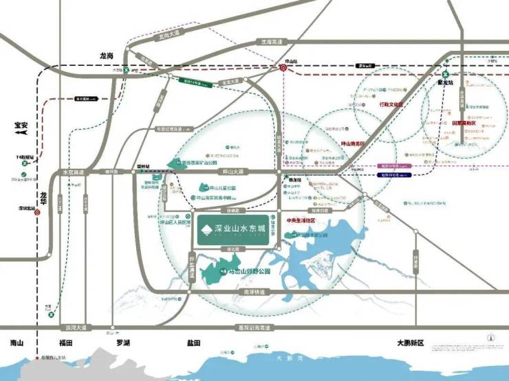 在市政方面,深业山水东城与坪山区人民医院为邻,坪山区人民医院为迁址重建项目,按三级甲等综合医院规划建设,预计2024年建成。而刚开工的深圳“新时代十大文化设施”之一的自然博物馆距离项目直线距离约5公里,将建成粤港澳大湾区乃至华南地区首座该类型的博物馆。