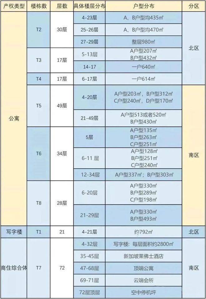 北区分为:T1写字楼、T2、T3、T4公寓。