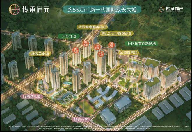 传承启元项目位于深圳市坪山区金牛东路和兰景中路交汇处,项目规划总建面约55万平方米。传承启元府项目分为一、二、三期开发建设,其中住宅约20万平方米,商业、办公及旅馆业约2.6万平方米,含18班幼儿园1所,一所36班制的学校;