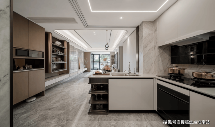 ·餐客厅踢脚线和厨房门框均为金属材质,开关面板全部定制同色系,把房屋美学做到极致……