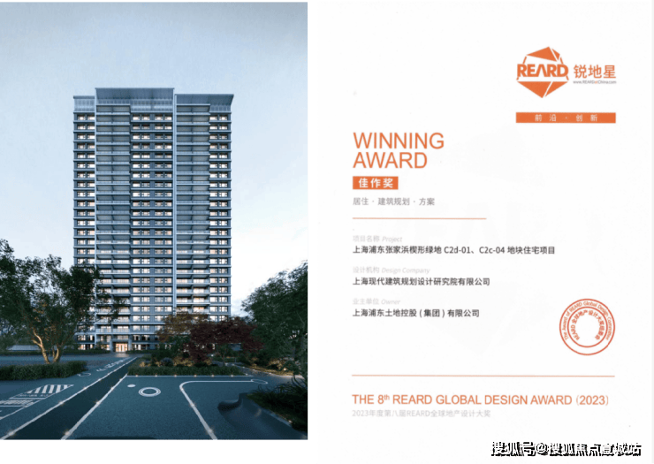 建筑通过采用米白色石材、深灰色铝板、玻璃、铁玻璃栏板几种不同的材质进行搭配,在极具层次感的对比中凸显建筑体块关系,彰显和谐的美学效果,项目获得了行业内的高度认可,收获了2023年度第八届REARD全球地产设计大奖。