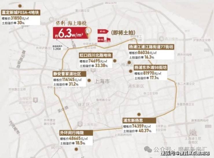 而5月14日上海市土地交易市场发布宝山区W12-1301单元90-01、91-01、92-01、93-01、94-01、87-01地块挂牌,地块起拍价81亿,起拍价对应的可售商品住宅整盘微利售价 6.3万/㎡, 若以当前市场30%溢价率来算,对应的可售商品住宅整盘微利售价将直冲7.9万以上/㎡,中环旁大四房总价更是轻松破千万!