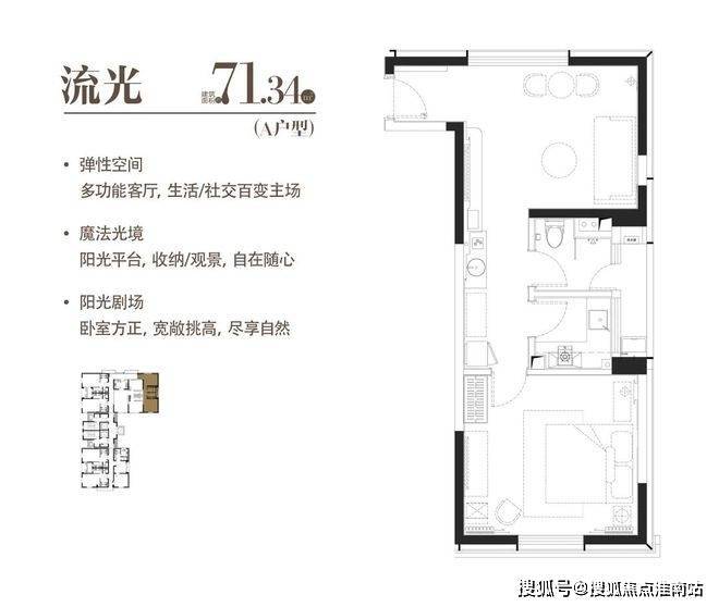 C|流光|建面约71.34m²|一室两厅一厨一卫
