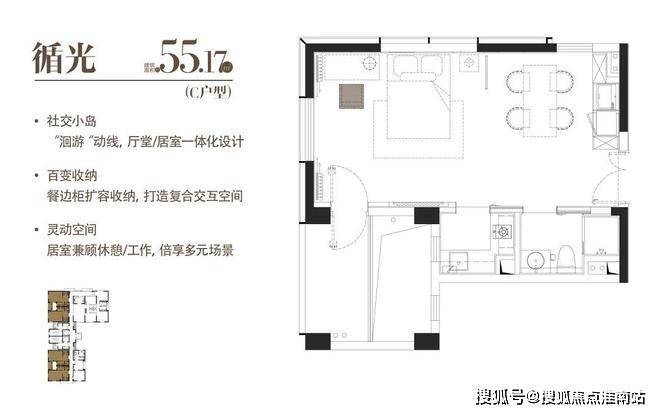 A|循光|建面约55.17 m²|一室一厅一厨一卫