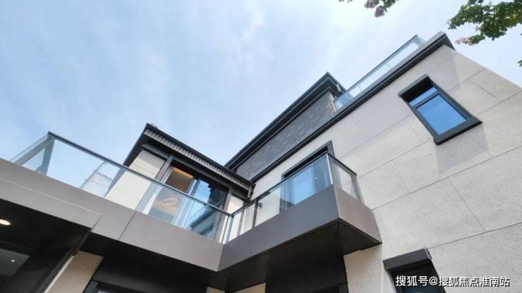 【上实·和风院】建筑外观是 新中式格调,以黑色面瓦为黛顶,整体线条简洁明快。