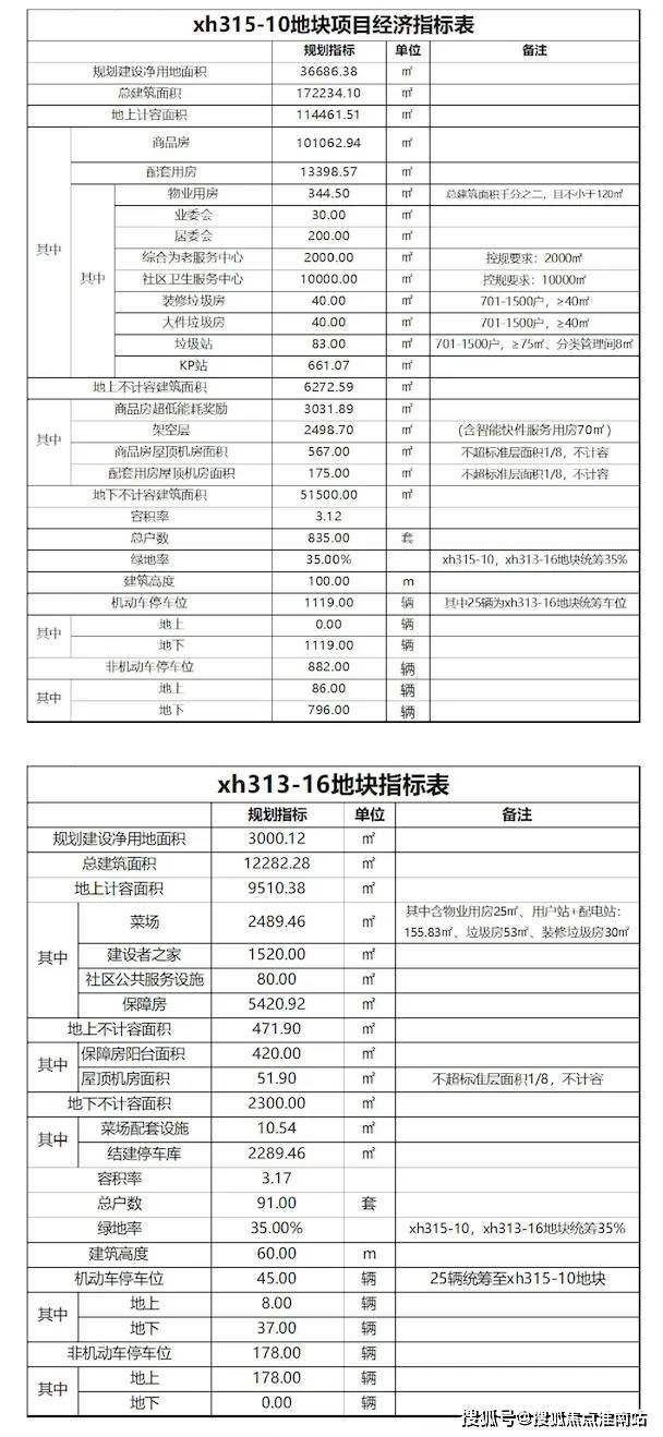 其中xh315-10地块为三类住宅组团用地(90%)、社区级公共服务设,施用地(10%),总用地面积约36686.38平方米,容积率3.12,限高100米,总建筑面积约172234.10平方米,地上计容面积约114461.51平方米,其中商品房面积约101062.94平方米,规划住宅套数835套。