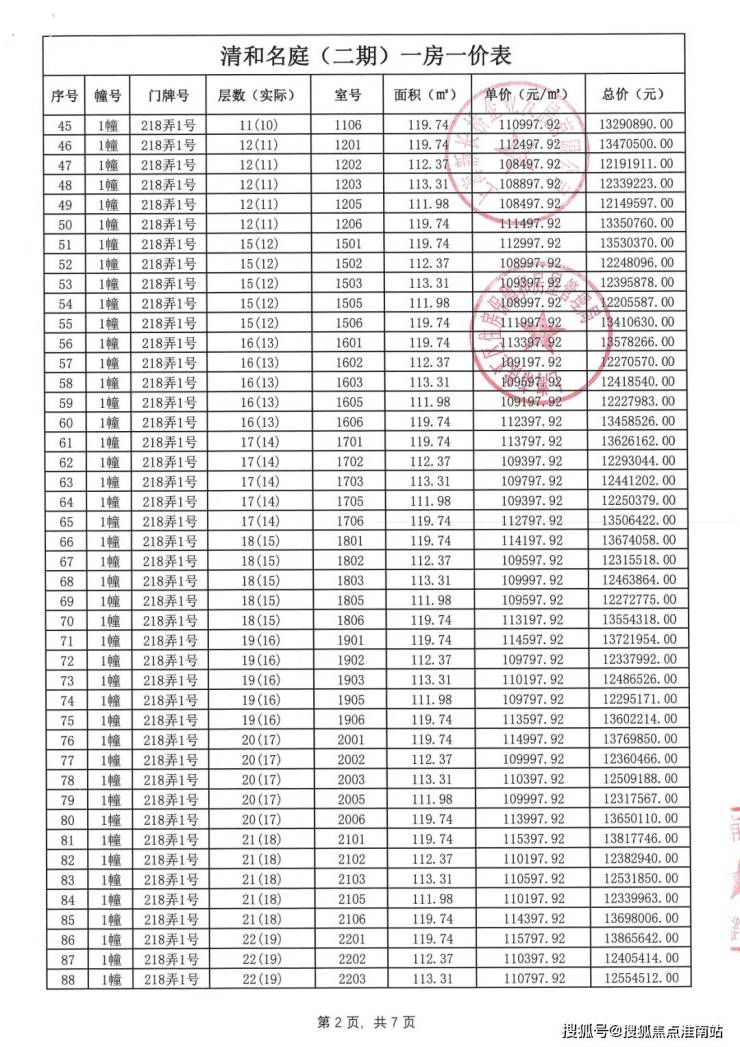 过会均价113635元/㎡