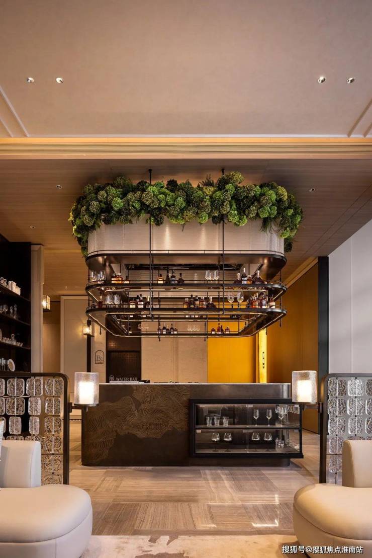 目前,项目示范区先呈现了会所的洽谈区、吧台等部分空间, 预计本月还将全景呈现泳池、健身房、下沉庭院景观等。