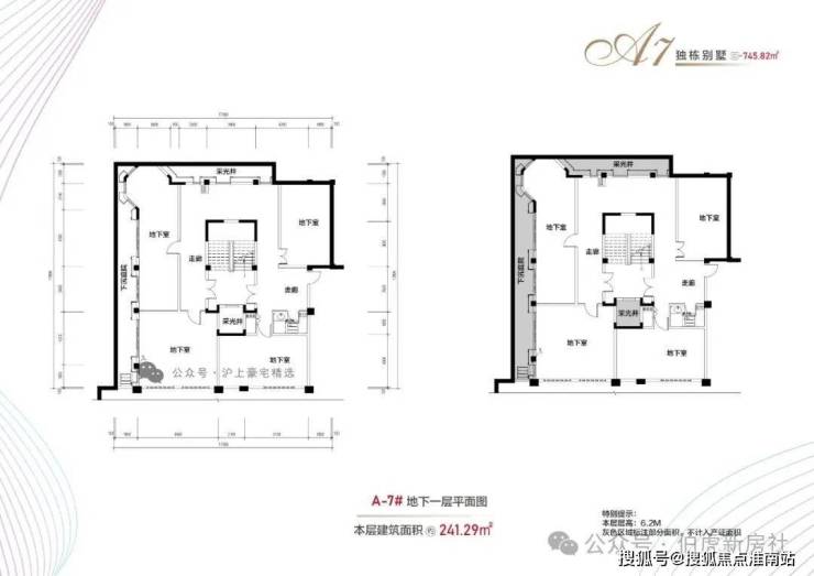 布局:地上三层(4.5米层高)+地下一层(6.2米层高)+900㎡花园